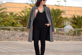 Today is the turn of my grey coat that I combined with my new black overall, striped shirt and a touch of yellow for a chic outfit. I hope you like it.