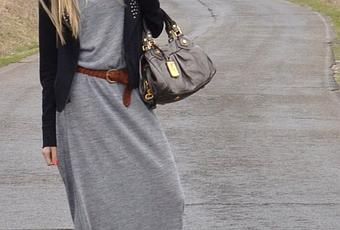 Escogí un vestido largo, con una cazadora con tachas en la solapa, y sombrero para la lluvia. Aunque no hace frío, ha empeorado algo el tiempo y ya no tenemos sol. La verdad es que tanto los vestidos largos como las faldas largas me resultan súper cómodas, excepto para el verano, en esa estación prefiero prendas cortas.