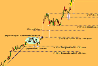 En estos instantes el hueco o gap dejado en el movimiento alcista sirve como referencia técnica en los entornos de los 21.00 euros, que recuerdo se fijaban como objetivo temporal de la subida.
