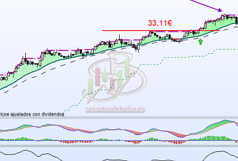 Por otro lado el RSc Mansfield aunque se deterioró fuertemente durante el recorte continuando informándonos de que se trata de un valor fuerte. Por tanto, estaríamos ante una potencial señal de compra. Si el precio consigue romper los 41,88€ se estaría dando la señal de compra y situaríamos el stoploss en 37,69€ lo que supone algo más de un 8% de riesgo que sería asumible