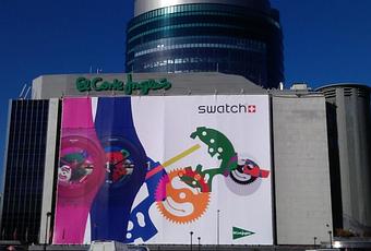 Again, the Swiss watch company Swatch GRIMAL2 I trust the realization recycled bags 500 bags unique and exclusive canvas exhibited at the Paseo de la Castellana in Madrid in February 2012