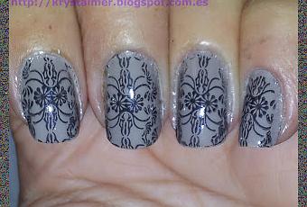 Para el estampado he utilizado el Essence Colour and Go de la nueva gama color 126 Date In The Moonlight. Estampa bastante bien, pero como podéis ver no parece azul. De todas formas imagino que como color de base se verá más azul aunque debe ser muyyyyyyyy oscuro.
