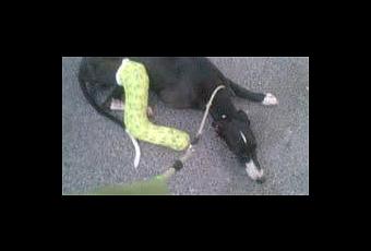 un veterinario, no podremos llevarlo hasta mañana que abran, necesita AYUDA ECONÓMICA pues está claro que va a requerir una operación y radiografías. Como se puede ver en las fotos, está muy delgado, aunque es tan amoroso que, con su patita rota y todo, nos mueve el rabito y nos pide caricias, creo que sabe que haremos todo lo que podamos para que no sufra más.