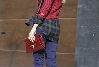 El tiempo anda un poco revuelto ya que amanece soleado y de repente se nubla y llueve por lo que hoy he escogido un look muy cómodo con gorro y tonos fríos, camisa leñador, rebeca, cartera y botines Burgundy con el contraste del azul klein de los pantalones.