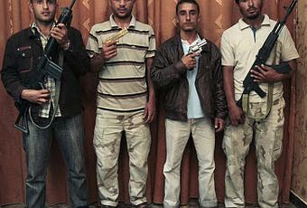 No son pocos los que denominan la estética de Quentin Tarantino como pornografía posmoderna, ejercicio arbitrario de hiperviolencia, artificio impostado, barnizado de falso esteticismo. Sin embargo, cuando abres el periódico, enciendes la tele o navegas por la tupida red cibernética, la filmografía del realizador deviene en un reflejo, casi documental, del reality diario. Observen si no detenidamente este retrato coral de los rebeldes libios que se convirtieron en carne mediática, gracias al privilegio de ser los últimos en ver con vida a Gadafi. Más allá de su pose sobria e indolente, o su armario ropero casual, intuimos el orgullo subyacente, expresado a través de la exposición de su artillería. Ahmed Ghazal, Nabil Darwish, Omran Shaban y Salem Bakir; así se llaman los miembros de este peculiar grupo salvaje. Nadie recordará sus nombres pasada la borrachera de flases. Ni falta que les hace; lo que importa es el minuto de gloria, la instantánea que inmortaliza su épica hardcore.