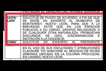 Además se informó de que la Comisión de Desarrollo Social y Derechos Humanos del Congreso dará vista tanto al Municipio de Monterrey, como a la Comisión Estatal de Derechos Humanos, para tomar las acciones que de esa petición deriven.