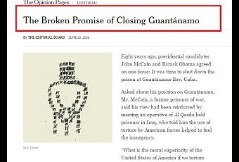 El fracaso del plan para cerrar la cárcel en la base de Guantánamo es una mancha vergonzosa para el Congreso estadounidense, que bloqueó los esfuerzos por lograrlo, señala este 20 de junio, el diario The New York Times.Esa penitenciaría, donde quedan 80 detenidos, echó por tierra la imagen de Estados Unidos como "campeón de los derechos humanos" y constituye un ejemplo deplorable para otros gobiernos inclinados a violar las leyes internacionales, añade el editorial del rotativo, titulado "La promesa rota de cerrar Guantánamo".