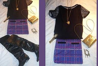 Remera con red y mini escocesa -AY Not Dead-, Bucaneras "de verano" -Sibyl Vane-, Collar de tigre -Complot-, Pulsera tachas -Complot-, Pulsera con dije -Manicomia-, Cartera -Vintage-.