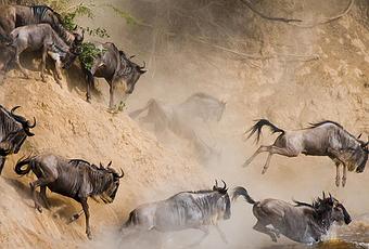 Cruces del río Mara Julio a agosto Norte del Serengeti y Masai Mara