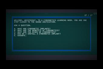 Los cibernéticos se diferencian de las mutaciones en que no se obtienen subiendo de nivel ni gastando puntos, sino que se encuentran por todo el mundo en diversos lugares y se instalan en el cuerpo del jugador. No se pueden subir de nivel como las mutaciones.