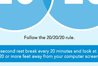 El sitio Greatist desarrolló una infografía en donde nos explica cuales son las posturas correctas y cuales no. Nos explica los beneficios potenciales de tener una buena postura en el trabajo y nos recomienda seguir la regla del 20/20/20.
