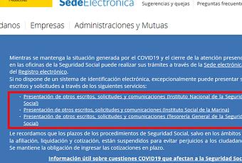 En la portada de la Sede Electrónica de la Seguridad Social encontrará los enlaces para acceder directamente a los formularios habilitados por cada una de las entidades para la realización de dichas gestiones: