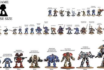 Vamos a empezar el día con esto que he visto en Twitter y que esta sacado de esta pagina (Muy chula y recomendable), que viene a ser una guía visual y rápida de algunas miniaturas de infantería Imperiales de W40K (Incluidos bipodes y un Knight), según tamaño y peana, comparando algunas figuras de unas gamas y/o épocas con otras.