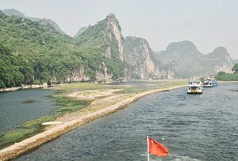 Al tratarse de una vía fluvial muy popular, es frecuente vislumbrar en el río Li grandes concentraciones de “navíos” y chalupas de toda catadura; turistas asiáticos mayoritariamente. Me recuerda el paisaje a los que viera años atrás en Sri Lanka, aunque exento de aquellas junglas frondosas habitadas por “invisibles” seres arbóreos.