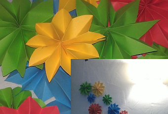 PASO 2: Cogemos la hoja y comenzamos a plagarla como ven en la imagen 2y 3. El sistema es como cuando hacíamos abanicos de papel.PASO 3: Plegamos por la mitad, nos queda en forma de abanico y cortamos en diagonal la punta, logrando así la forma de pétalo y obtenemos todos los bordes parejos.PASO 4: Ahora grapamos en el centro para fijar nuestra flor y uniremos ambos extremos opuestos con una grapa o pegamento. Haciendo esto en ambos lados formaremos nuestra flor.Así de sencillo es hacer las flores, ahora veamos como las colgamos
