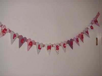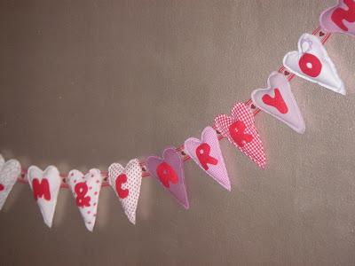 Quiero colgarla en un pequeño lugar de la casa que pretendo acondicionar para coser y hacer manualidades.La guirnalda está formada por 16 pequeños corazones tilda rellenos de fibra acrílica. En cada uno de ellos pegué una letra de fieltro (con ese papel termoadhesivo que al lavar no se despega).Por ahora está claro que es una guirnalda, que tiene corazones y que forman entre todos la dichosa frase que se ve por todos lados. Pero lo que no he explicado es dónde está el reciclaje. Sólo diré que 10 corazones están hechos con diferentes prendas de un mismo tipo de ropa. Por ejemplo, en la foto que sigue todos los corazones, menos el de la A están hechos con tela reciclada.