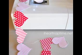 Si tienes recortes de telas que quieres reciclar, puede ser una bonita opción para darles una segunda vida. Utiliza distintas tiras de telas que combinen entre sí para crear una estupenda guirnalda para San Valentín. En este caso se han utilizado telas en tonos pasteles y con motivos florales lo que ofrece un estilo vintage y romántico a la guirnalda, pero podéis optar por otras telas sí utilizáis tonos o motivos bien románticos que encajen bien con estas fechas.