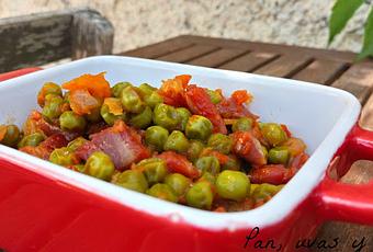 Claro, en comparación con los garbanzos casi parece que adoro los guisantes, cuando la realidad es que solo los tolero. Pero así preparados, con salsa de tomate y jamón (y alguna vez patatas fritas) podría llegar a decir que los disfruto bastante.