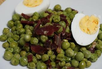 Guisantes salteados con jamón