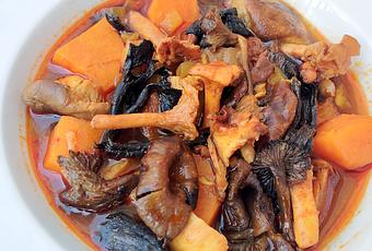 Con un maravilloso surtido variado, con batata, tan propia de ésta época, la llamada “Papa Rosa de Málaga”, que no sólo se usa para postres, he preparado ésta receta: GUISO DE BATATA CON SETAS.
