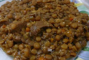 Elegí unos lentejones, que dicen que no necesitan remojo. Los enjuagué bien, me fijé que no hubiera ninguno feo, y los dejé en agua tibia por 30 minutos. Así podía ver cuales eran los que estaban feos. Después los escurro bien.