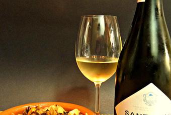 La receta de hoy parte de Pendiente de Diagnosticar, que abrió la nevera y la despensa y vio que tenía una selección de setas diferentes, una pata de pulpococida y pensó en "multiplicar" las opciones: ¿pulpo con setas?, ¡porqué no!; ¿y si le añadimos unos garbanzos y unas algas?, pues entonces..., ¡entonces lo que tenemos es un recetón!, os lo digo yo que disfruté muchísimo de este plato, que me transportó a las costas de Galicia, por aquello del pulpo, las algas y los garbanzos, pero no tenía Albariño y sí un magnífico vino de Santorini que habíamos comprado en Greek and Shop. Santorini es un lugar dónde el pulpoes el plato principal de cualquier restaurante de la isla, así que, ¡a por ello!.