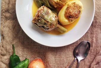 Seguimos con recetas de invierno, que para eso hace frío, y que bien que sienta llegar a casa y poder meterle mano a uno de estos platos de cuchara ¿Verdad? Este guiso es obra de nuestra querida madre, bueno suponemos que no se lo habrá inventado ella y que lo harán otras madres del mundo, pero para nosotras es el mejor guiso de verduras rellenas de todos. Lo habéis comido alguna vez? Pues éste es el momento de hacerlo.