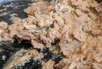3) Agregamos nuestra carne cocinada y finamente deshilachada.