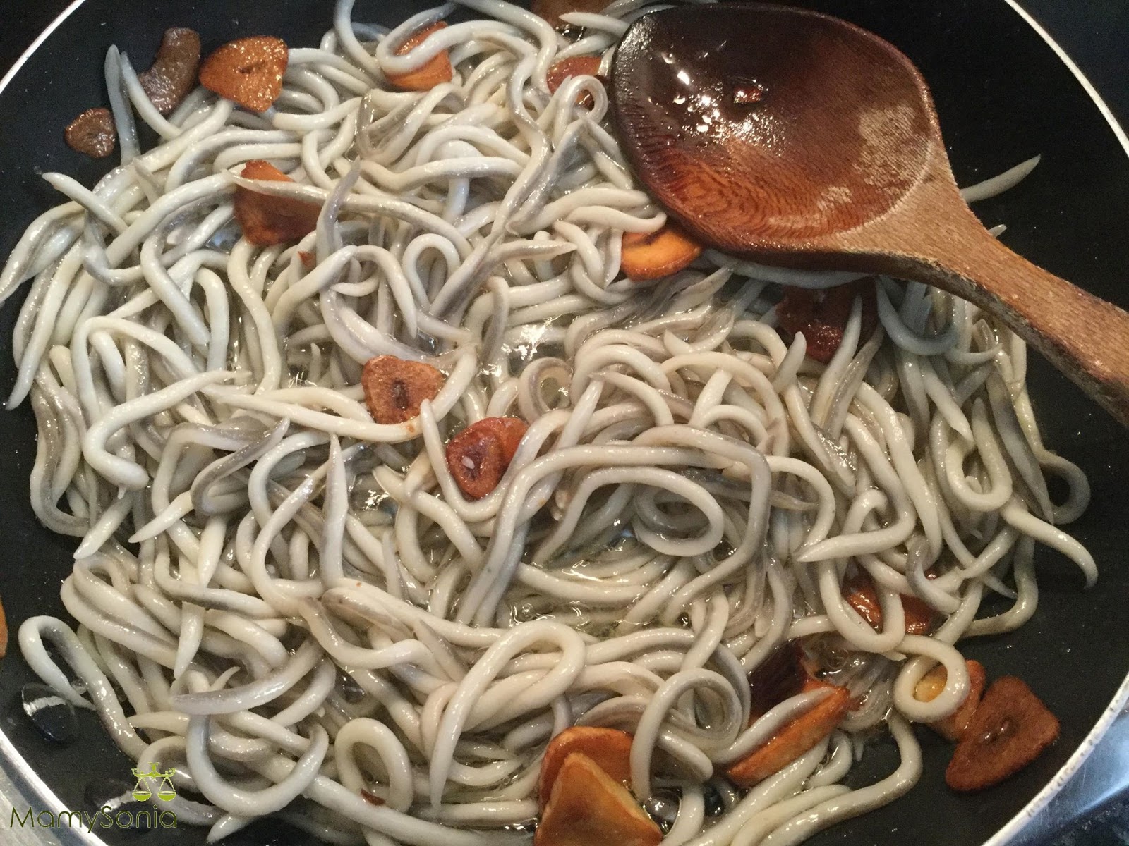 _ 250 grs de gulas_ Aceite de oliva_ 2 dientes de ajo_ 1 guindilla_ Sal