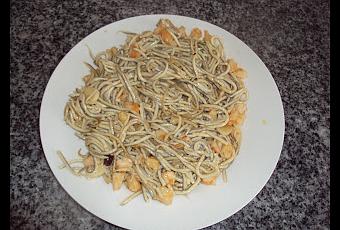 Ingredientes:Un paquete de gulas8 gambas3 dientes de ajoUna cayenaAceite de oliva