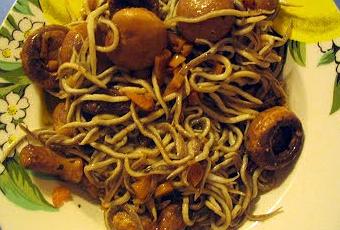 Gulas salteadas con ajos y champiñones frescos