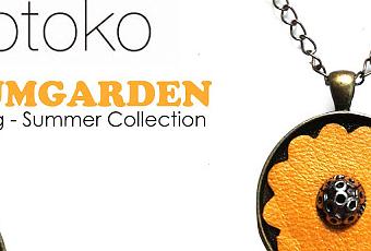 Collar Yotoko de cadena en dorado viejo, camafeo redondo con interior depiel amarillo 100% natural y capuchón plateado