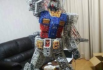 Es un puñetero Gundam hecho con matrices! De otros modelos de Gundam supongo. Y por lo que ve en la foto debe tener mi altura. Esta muy detallado y es una pasada por el detalle, el tamaño y la pose. No lo ha hecho VampBitMe, aunque comparto su deseo de poder (Y saber) hacer algo parecido alguna vez.