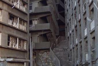 Buildings and the "Stairway to Hell", inside of Hashima Island - Foto: Wikipedia.