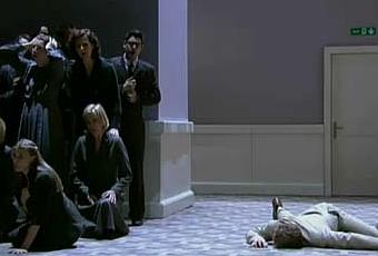 Intenté encontrar un hilo argumental y quedé perdido en la propuesta realizada por Guth para Viena, perdido y fascinado por la forma en la que está filmado (el director de vídeo es Hannes Rossacher), algo habia en esas imágenes que me atraía hasta el punto de quedarme pegado a la televisión y no sabía exactamente qué. era.. ¿Sería la realización videográfica?, ¿el trabajo de actores?, ¿los movimientos coreográficos? ¿o la mezcla de todas esas cosas? También me sedujo, por razones técnicas, la escenografía, la facilidad con la que se cambia de escena a través de un dispositivo rotativo. Me desconcertó un poco el ver a una señora traduciendo en lenguaje de sordos -lo podría entender si Claus Guth lo hiciera en todo momento y en todas sus produciones-. En lo que no me cupo la menor duda fue en que las prestaciones del Arnold Schönberg Choir, que en este caso debe cantar sin partitura y moviéndose en escena, y el Ensemble Matheus dirigidos por Jean-Chirtophe Spinosi son extraordinarias y el equipo de cantantes más que solvente: Susan Gritton, Cornelia Horak, Bejun Mehta, Richard Croft y Florian Boesch.