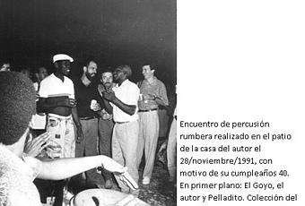 El Goyo fue el fiel amigo a quien acudía cada vez que necesitaba conocer, aprender o únicamente compartir alegrías y penas, la figura que sin acompañarme directamente en mis investigaciones, estuvo desde el inicio siempre cerca, pendiente de mis avances o mis retrocesos. Mucho de lo que logré y aún logro se lo debo a él y a sus enseñanzas de cómo apreciar y juzgar sin “entrometimientos” el universo de la cultura afrocubana, vasto e inconmensurable. No importaba nada mi experiencia por casi tres años en África, si no hubiesen existido El Goyo, o mi maestro Pelladito.