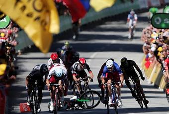 En el siguiente vídeo podemos ver otro sprint en el que está implicado Mark Cavendish, el ciclista que se vio afectado por la acción de Peter Sagan.