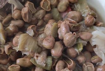 Agregar un vasito de anís y un vasito de caldo para que haga chup-chup. Esperar a que se reduzca, las habitas se arrugan, durante unos 20 - 30 minutos, dependerá de lo tiernas que sean las habas