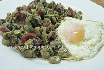 Dejo las habas preparadas y seleccionadas: Las que voy a desgranar a un lado, las que voy a utilizar con cascara, al otro.