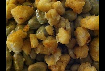 - En otra sartén dora el diente picado y añade las habitas, saltea durante unos minutos y sirve las habitas con las migas.