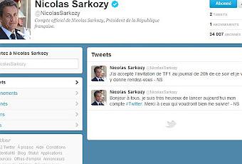 El mismo día en que el presidente de la República Francesa, Nicolas Sarkozy, crea una cuenta propia y oficial en Twitter, aprovecha para anunciar que aparecerá esta nocheen los informativos de las 20h del canal francés TF1, supuestamente para comunicar su candidatura a la presidencia en las próximas elecciones, en abril de 2012.Con sólo 2 twetts, el casi candidato de UMP ha conseguido más de 34.000 abonados en apenas 6 horas. Su único follow, la cuenta del Elíseo. Pero no es el único, muchos de sus adversarios y colegas franceses también poseen un perfil en esta red social: @fhollande, @MLP_officiel, @evajoly, @bayrou, entre otros.