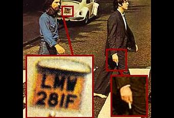 23. En la tapa de “Abbey Road”, Paul está descalzo (a los cadáveres usualmente se los entierra sin zapatos) y con el paso cambiado respecto de los otros Beatles. Sus ojos parecen cerrados. Está fumando. La placa del Volkswagen es “28 IF”, sugiriendo que Paul tendría 28 años si siguiera vivo.