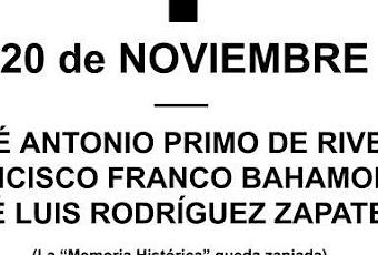 El próximo domingo 20-N, celebramos las elecciones en España. Fecha histórica para los españoles hasta este año, unos conmemoran la muerte de José Antonio y otros, celebran su asesinato. Unos conmemoran la muerte de Franco y otros, celebran que se muriese. A partir del 2012, la mayoría del pueblo español celebrará la muerte política de su último dictador, el nefasto Zapatero que hundió a España en la ruina, el de la Memoria Histórica para solo una parte de los españoles, ya que a la otra parte se la negó, reabriendo heridas ya curadas entre los españoles. El día 20 de noviembre de 2011, muere políticamente el ominoso y execrable Zapatero, el más detestable presidente de la historia de España, por tal motivo ya se puede presentar su esquela.