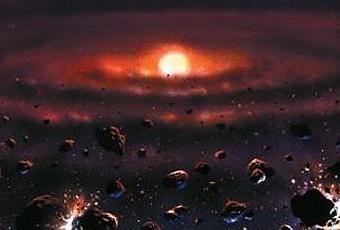Las perturbaciones entre los protoplanetas y Júpiter, dieron lugar a colisiones y a la excitación dinámica de poblaciones de pequeños cuerpos que aún no habían sido acretados por los protoplanetas. Esta excitación provocó que los asteroides localizados cerca de Júpiter sufrieran un aumento de sus velocidades orbitales relativas, llevando a la fragmentación de los mismos cuando se producía una colisión y evitando la aglomeración en objetos de mayor tamaño. Así se formó el actual Cinturón principal de asteroides entre Marte y Júpiter.