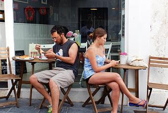 Me han dicho que tenga cuidado las veces que salgo a la calle con mi cámara. Comprendo que a la gente no le guste que no se les pida permiso para fotografiarlas. Las cosas se ven distintas desde este lado, y no siempre tiene uno la habilidad de hacer ver los motivos. Los míos no precisan una explicación, pero estaría dispuesto a darla. Ayer vi a un pareja en una terraza. Se daban la espalda, pero pensé que se conocían y el gesto, darse la espalda, era una especie de escena ensayada o de acto final de una tragedia o de una comedia ligera. A mí no me interesan las historias de las cosas que veo. Me limito a registrarlas. Adoro ese registro, minucioso a veces; impulsivo, otras. En esa ocasión me coloqué frente a la cristalera del local y disparé. No creí que estaba haciendo nada maravilloso, aunque hay ocasiones en que, antes de darle al clic, aprecio el prodigio que tengo delante y rezo para que nada se pierda. Admito que a veces doy con instante y con el encuadre y con la luz. No sé. No es cosa de contar ahora cómo se hace una buena foto. Esta no lo fue. Me gustó verme ahí detrás, en el cristal, duplicado. Como si los conociera. Como si la historia que estaba a punto de inventarme pudiese ser cierta y me incluyese a mí. Como en una película de Antonioni.