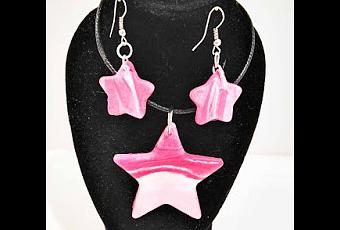 Con un cortador de repostería en forma de estrella, cortamos una estrella más grande para nuestro collar y unas más pequeñas para los pendientes.