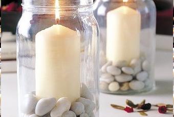 Hoy en Tatamba te traemos un proyecto fácil y sencillo: hacer unos portavelas baratos con tarros de cristal. Sólo necesitas botes de cristal de conservas vacios, piedras y unas velas.INSTRUCCIONES: Mete las velas en los botes de cristal y rellena el fondo con piedras. Puedes escoger las piedras del color que más te apetezca, al igual que el de las velas. Eso es todo¡¡¡
