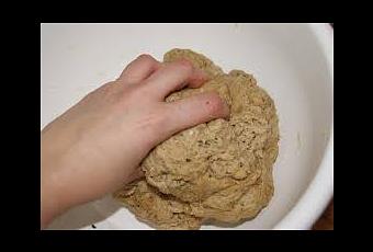 - Colocar harina de soja en un recipiente haciendo un hueco en el centro y agregando agua poco a poco, en la cantidad necesaria, hasta crear la textura de un pan.