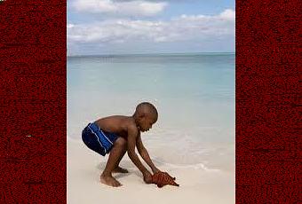 Una mañana mientras paseaba a orillas del océano vio a lo lejos una figura que se movía de manera extraña como si estuviera bailando. Al acercarse, vio que era un muchacho que se dedicaba a recoger estrellas de mar de la orilla y lanzarlas otra vez al mar.