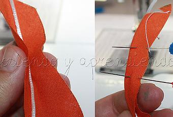 Método 2, con aparato para biés, es lo mismo, la diferencia está en que es el propio aparato el que te va doblando la tela, no tus dedos.